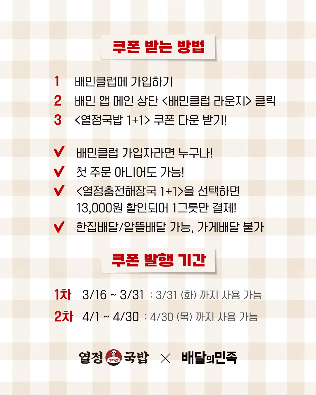 열정충전해장국 1+1쿠폰 이벤트